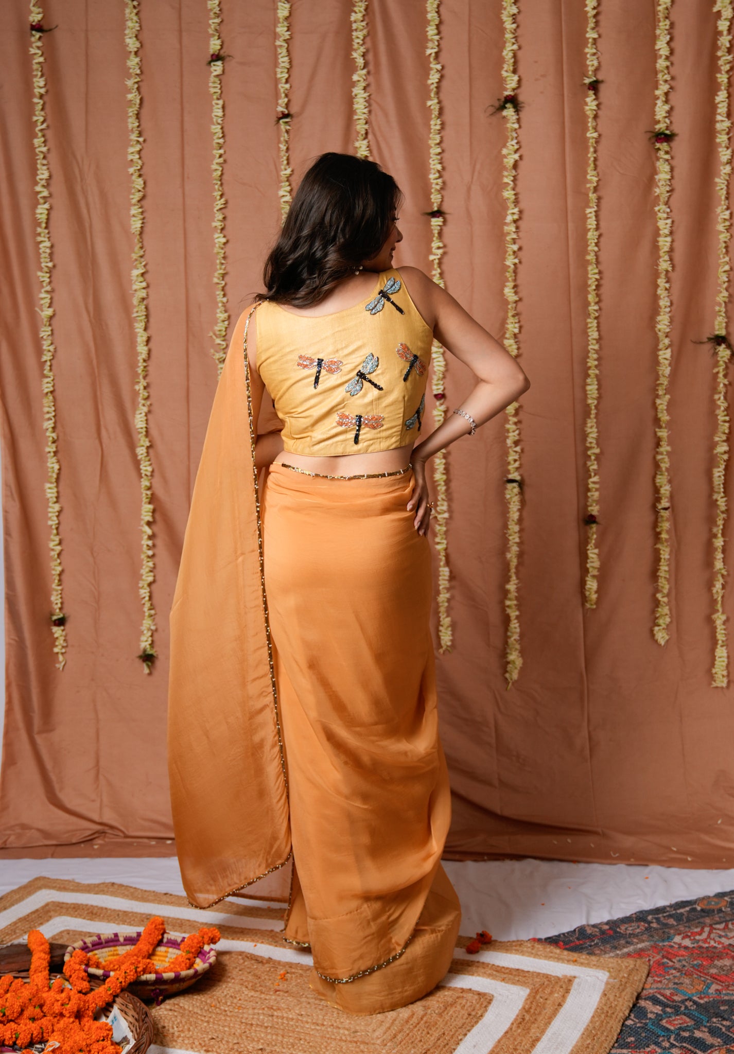 Blouse: The model is wearing size 34 of blouse DRAGONFLY EMBROIDERED SILK BLOUSE.