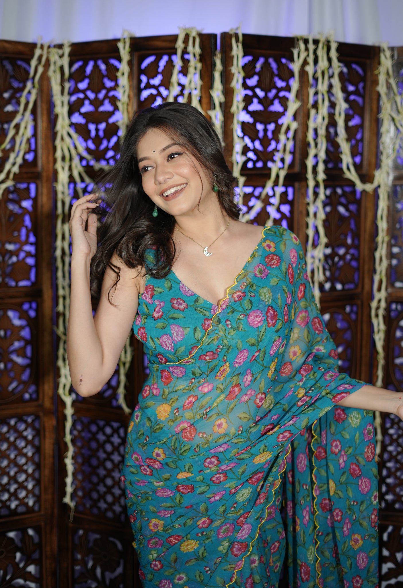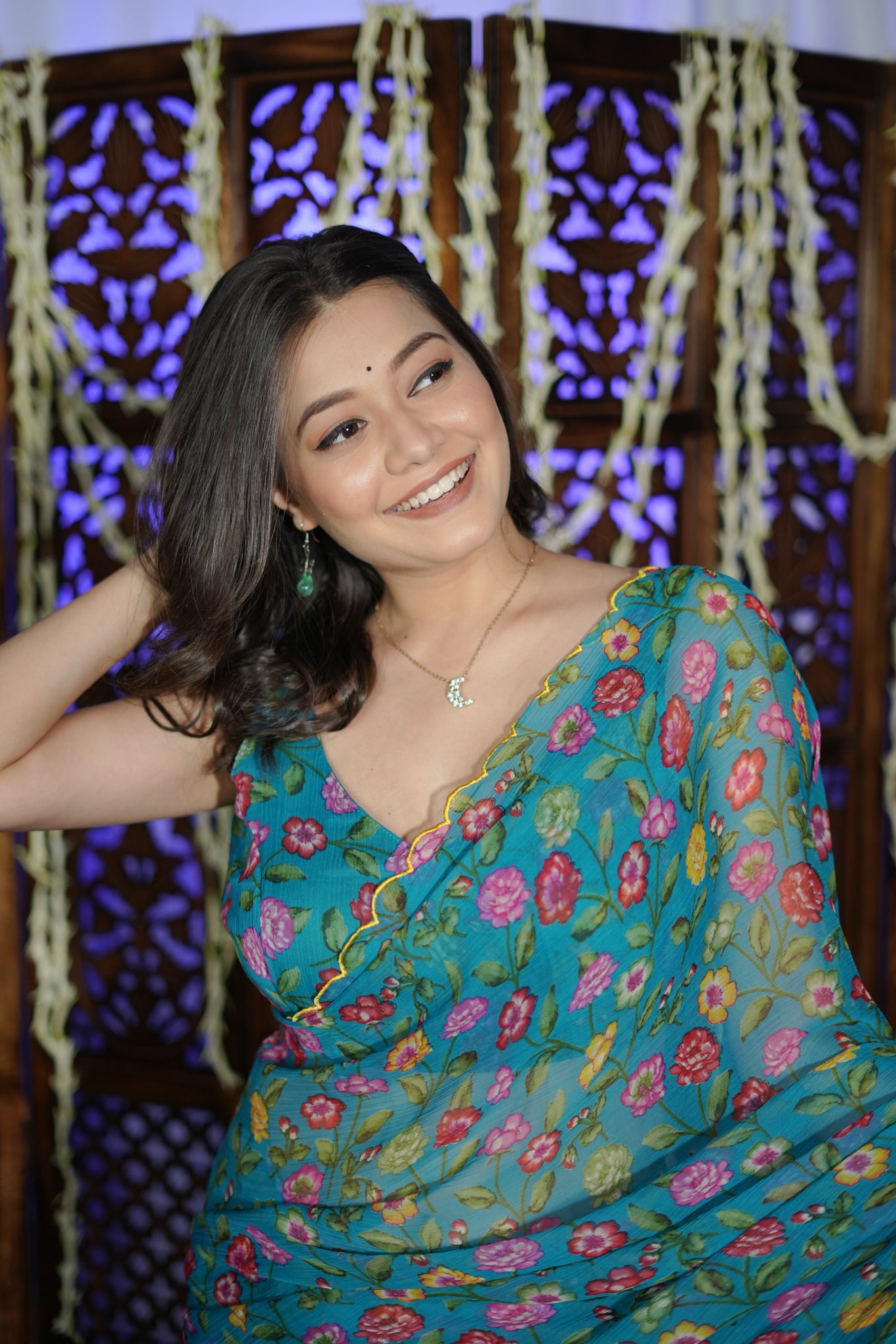 Disclaimer: The pictures are clicked in daylight. Color may vary slightly from the image due to the screen brightness. The model is wearing KHUSBOO CHIFFON SAREE.