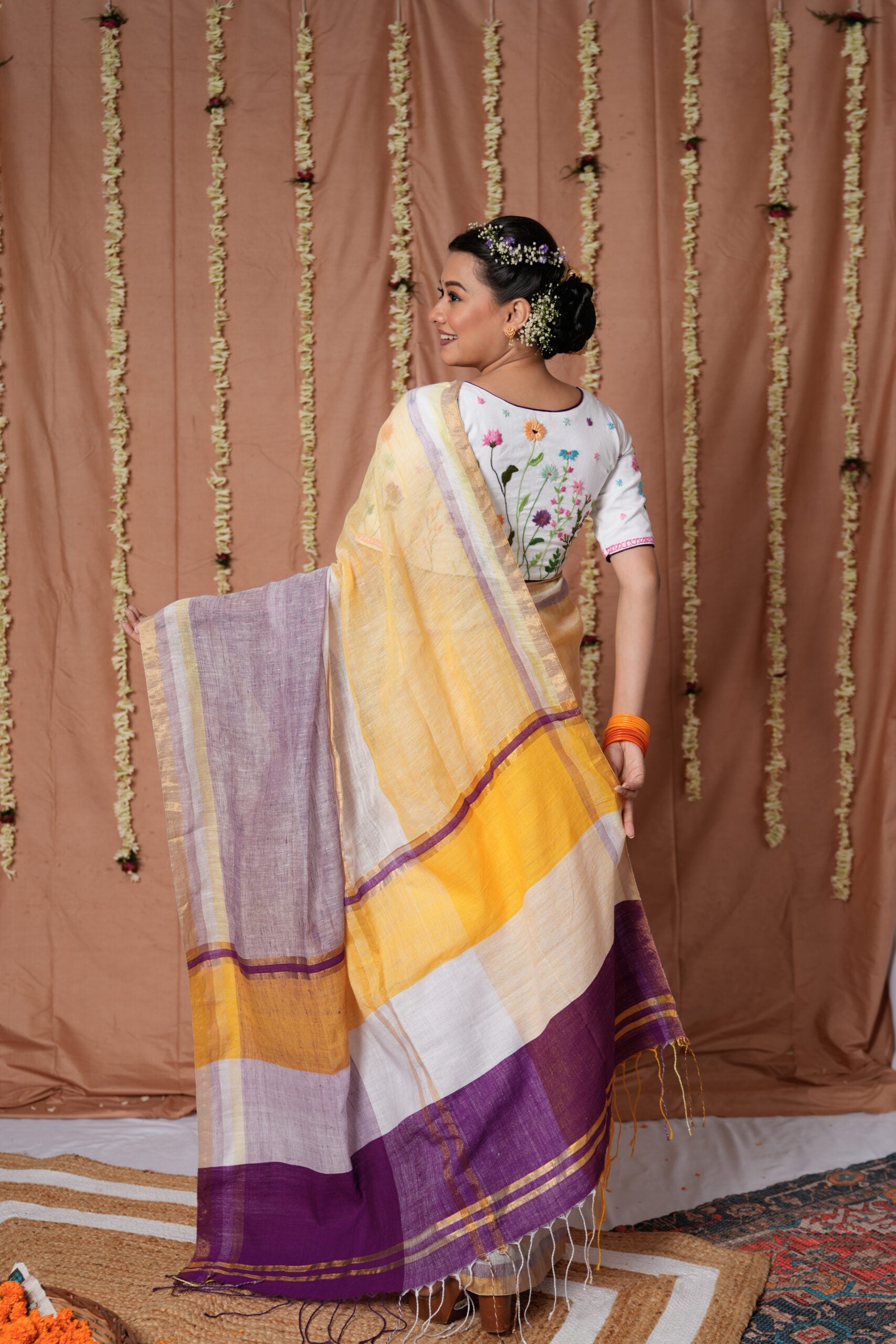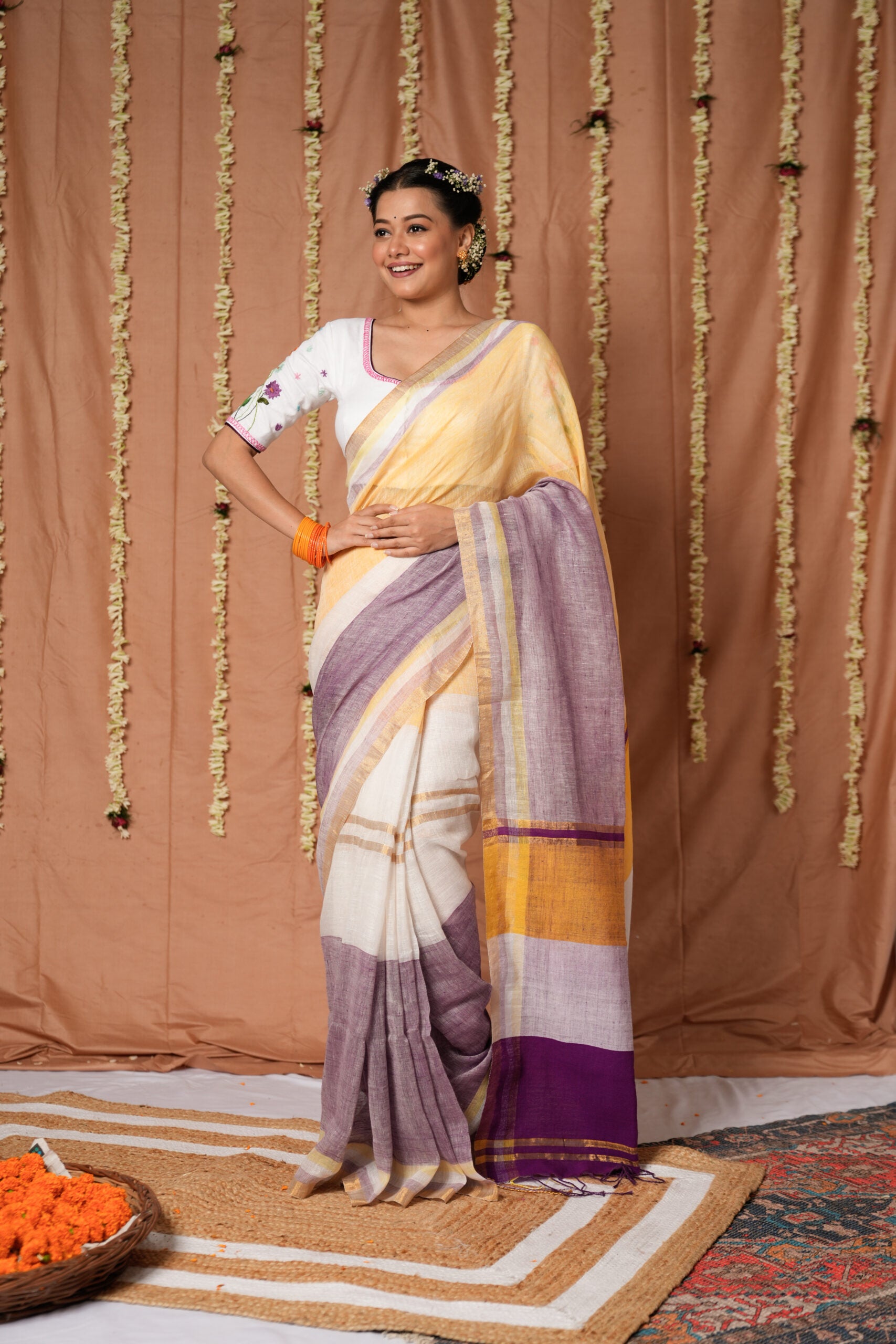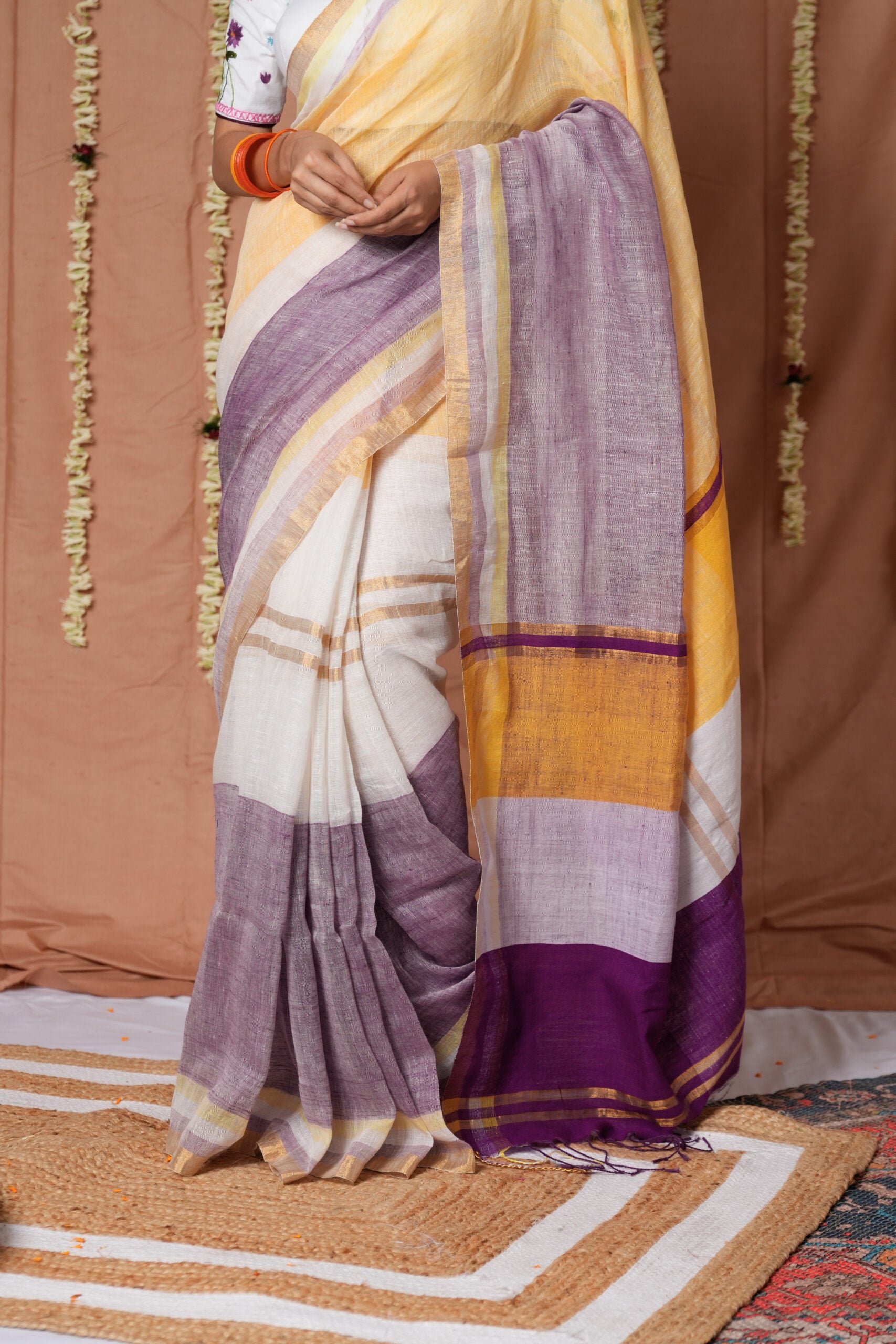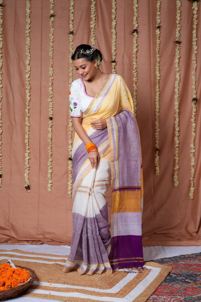 Lavender Sunrise Linen Handloom Saree