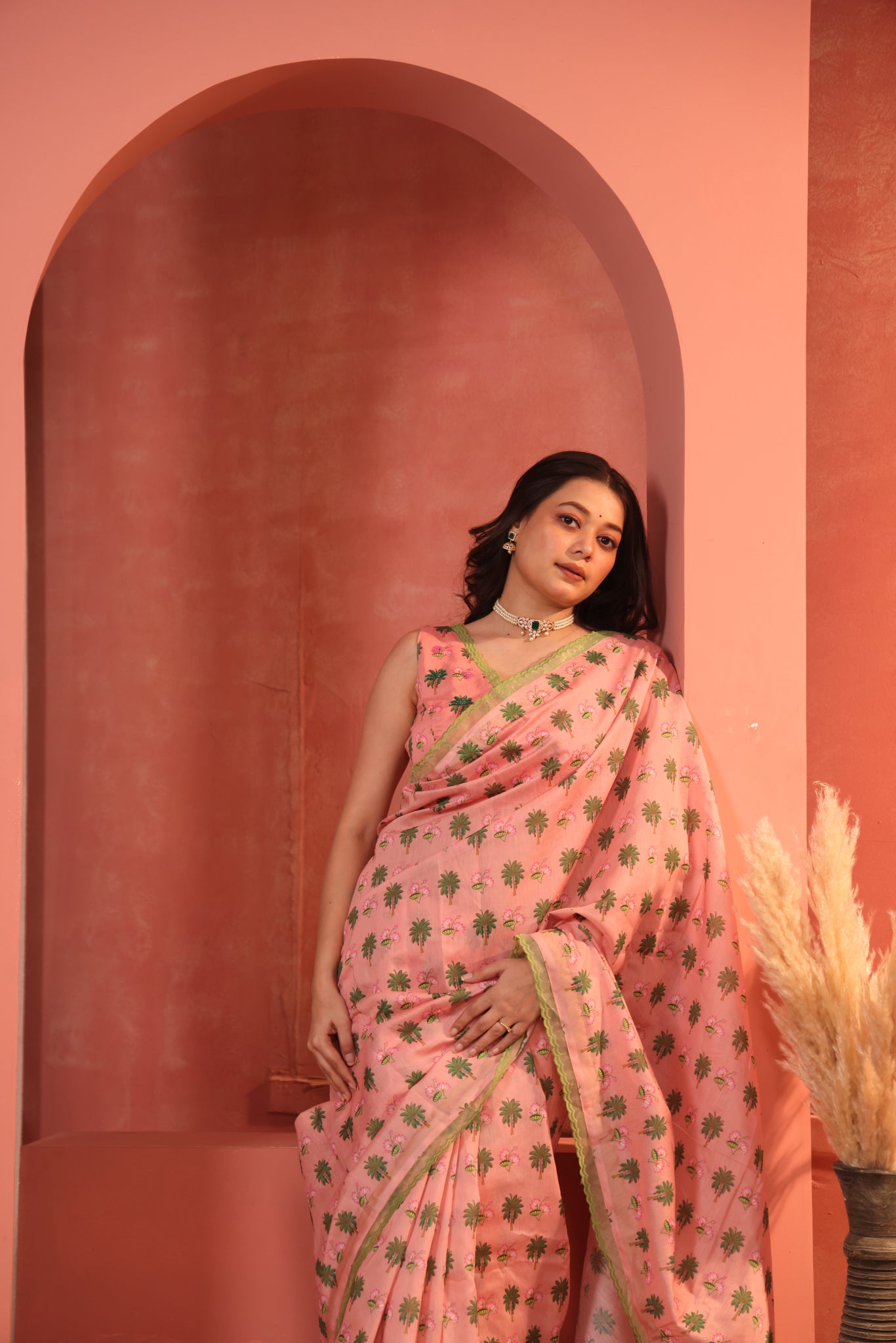 Introducing our Peachy Gleam Saree — a radiant drape crafted in Modal Chanderi. The saree features organza scallop embroidered border that add just the right pop of festive charm. Paired here with our handcrafted Peachy Gleam blouse, this look is perfect for wedding functions, Sangeet nights, and every moment you want to feel like royalty.