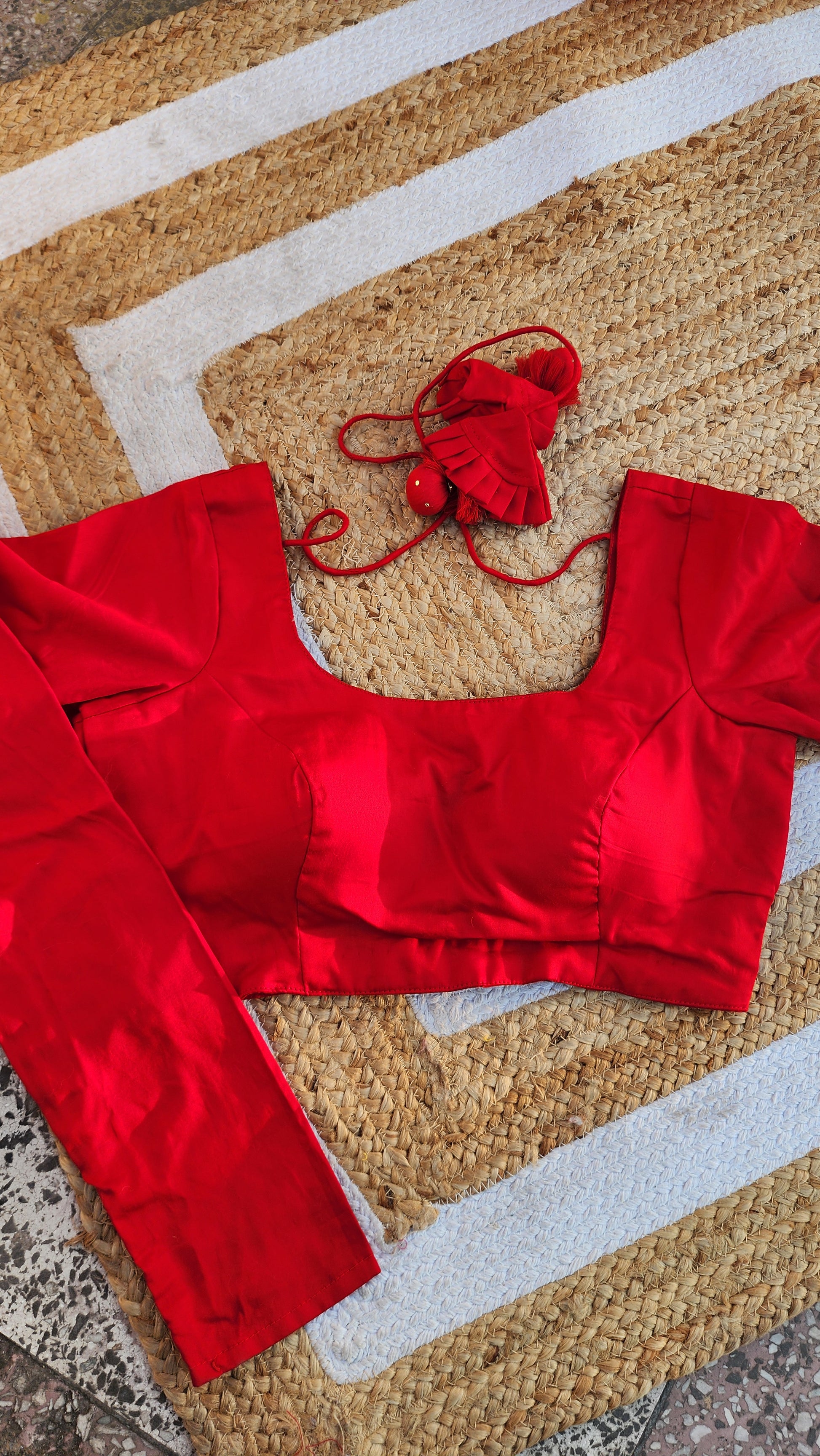 Red Cotton Silk Full Sleeve Blouse